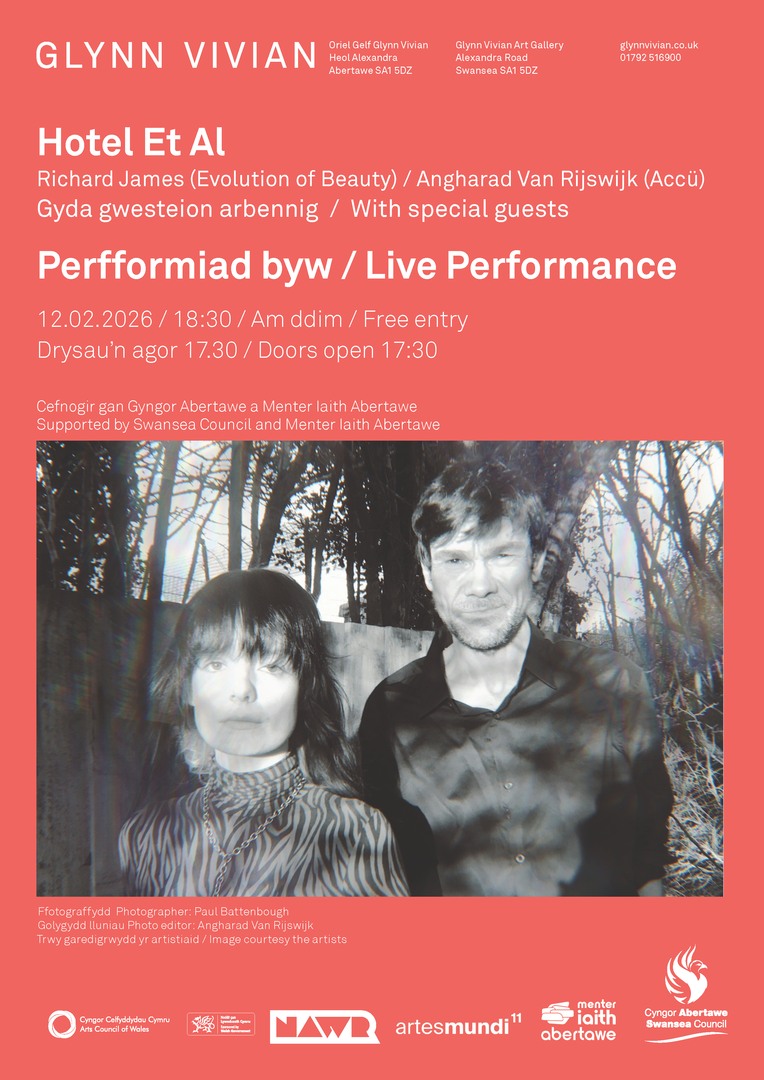 Hotel Et Al, the collaborative project of Richard James (Evolution of Beauty) and Angharad Van Rijswijk (Accü), are set to debut new music created in response to exhibitions at the Glynn Vivian Art Gallery, Swansea.
